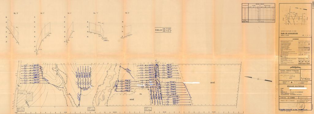 Plan de drainage souterrain annoté pour la municipalité de Buckingham, comté de Papineau. Préparé pour le compte du Ministère de l¿Agriculture du Québec.