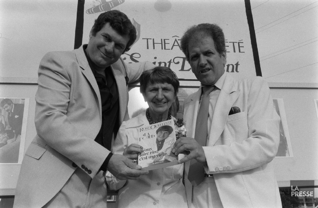 Le dossier concerne le lancement de l'autobiographie de Rose ''La Poune'' Ouellette ''Vous faire rire, c'est ma vie''. Les documents montrent notamment Rolland Bédard et Réjean Lefrançois