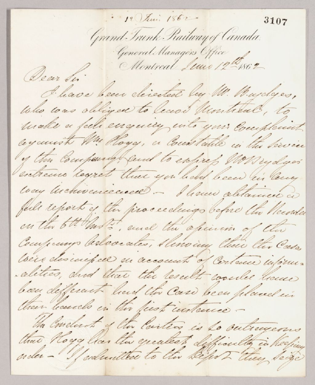 Plainte de Joly contre Hogg, constable au service du Grand Tronc, qui l¿a molesté
