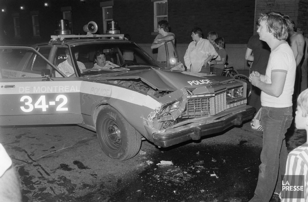 Le dossier témoigne d'une chasse à l'homme spectaculaire par le Service de police de la Communauté urbaine de Montréal (SPCUM). Les documents montrent notamment une vue en plongée de la scène avec un véhicule de la Croix Rouge et plusieurs voitures de police endommagées