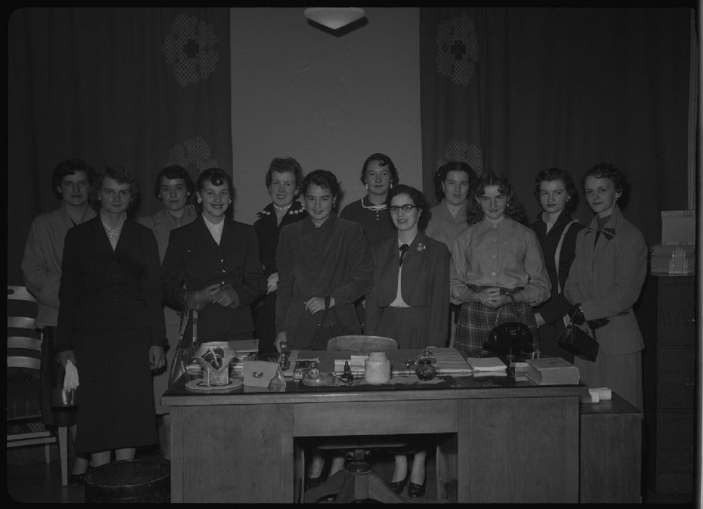 Groupe de jeunes filles réunies pour passer les examens des Arts domestiques à Québec, 1954, Archives nationales à Québec, Fonds Ministère de la Culture et des Communications, (03Q,E6,S7,SS1,D6,P312-54H), François Simard.
