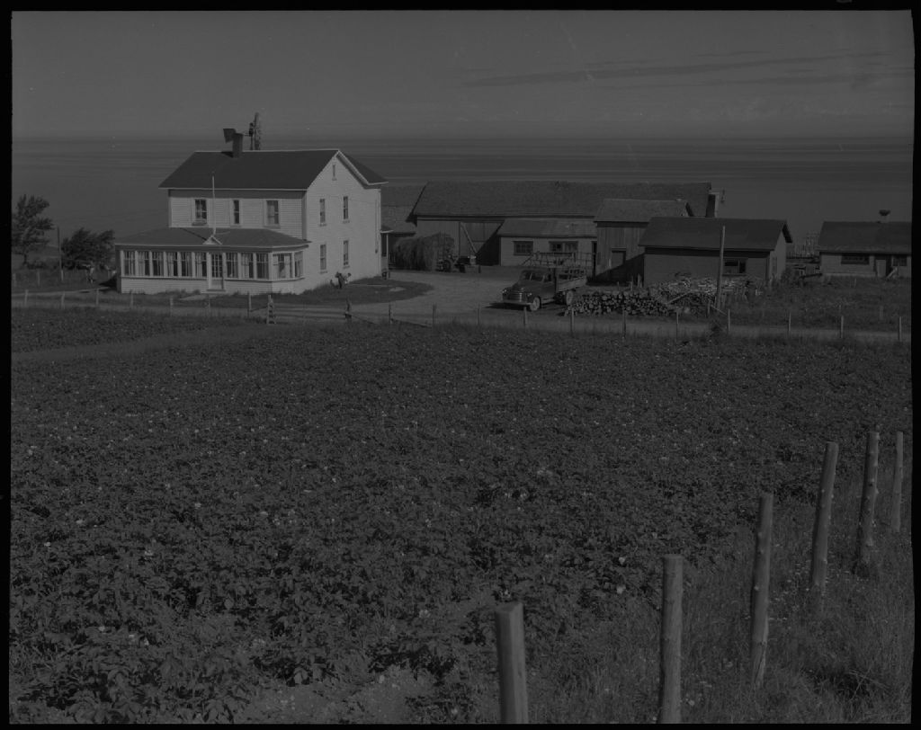 Ensemble de ferme chez Robert Roy à Sainte-Marthe, Gaspé-Nord, 1954, Archives nationales à Québec, Fonds Ministère de la Culture et des Communications, (03Q,E6,S7,SS1,D6,P1243-54H), Omer Beaudoin.