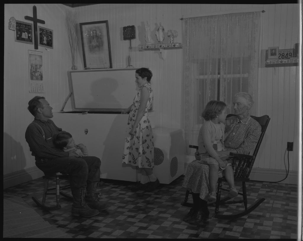 Toute la famille est réunie dans la cuisine chez Philias Bouchard à Sacré-Coeur, comté de Saguenay