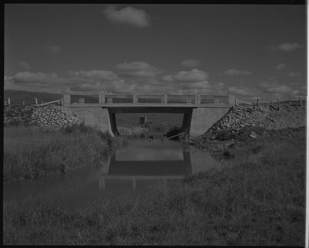 Pont sur la route 45 entre des villages de La Reine et de Dupuy, 1954, Archives nationales à Québec, Fonds Ministère de la Culture et des Communications, (03Q,E6,S7,SS1,D2326,P1574-54H), Paul Carpentier.