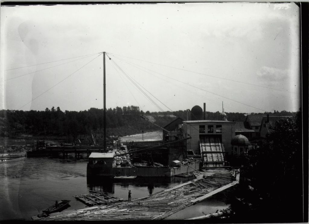 - Ce dossier illustre le complexe industriel de la James MacLaren Company sur les rives de la rivière du Lièvre à Buckingham. On y trouve des vues d'ensemble des installations (scieries, glissoirs à bois, silos, bâtiments) mais aussi des négatifs sur le transport et l'entreposage du bois (estacades, flottage, empilement).