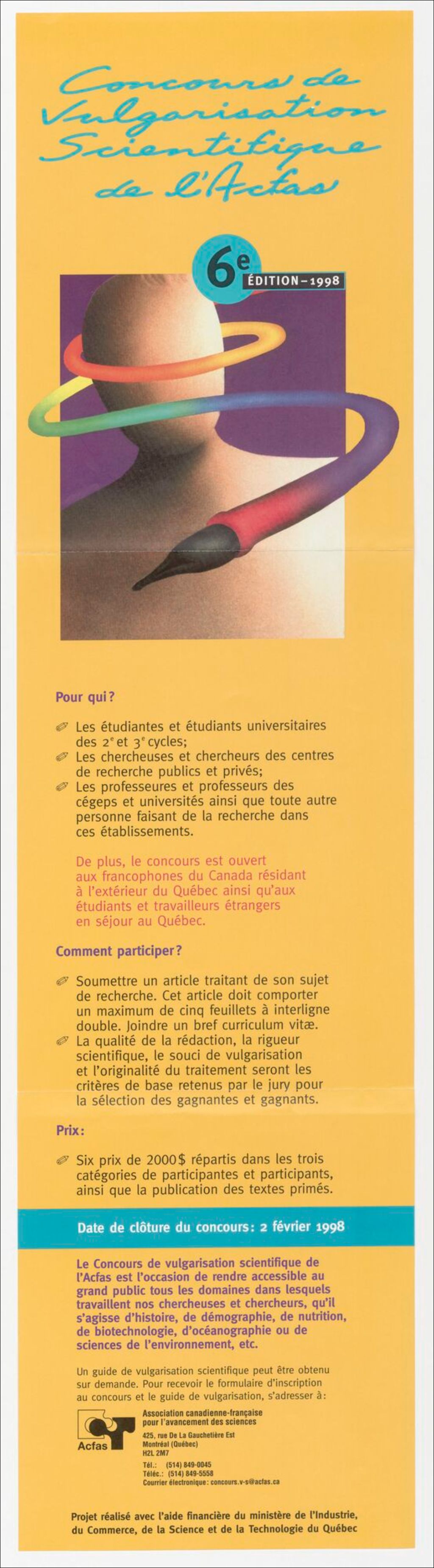Concours de vulgarisation scientifique de l'Acfas, 6e édition - 1998