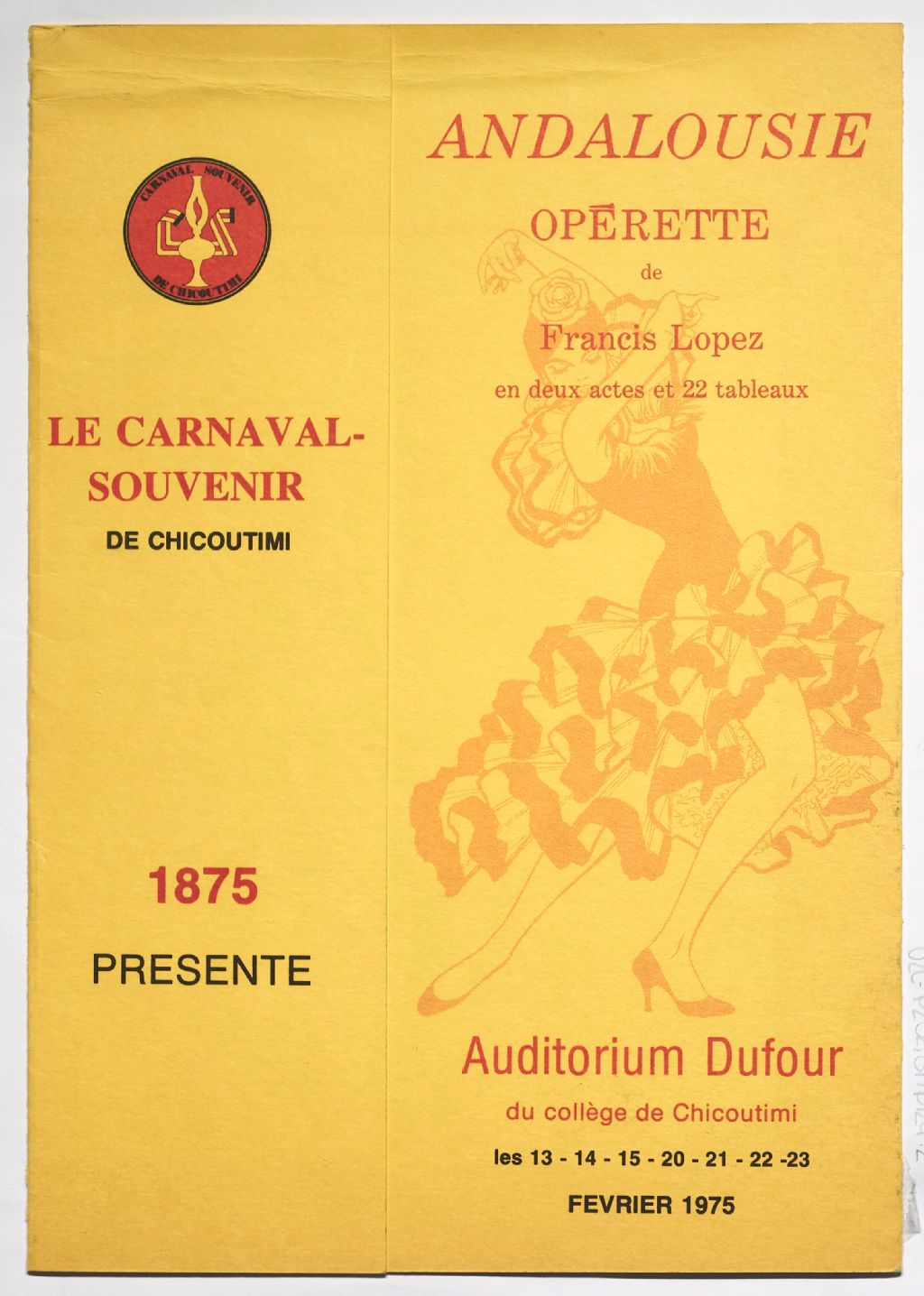 - Programme de l'opérette Andalousie de Francis Lopez, présenté par le Carnaval-Souvenir de Chicoutimi 1875