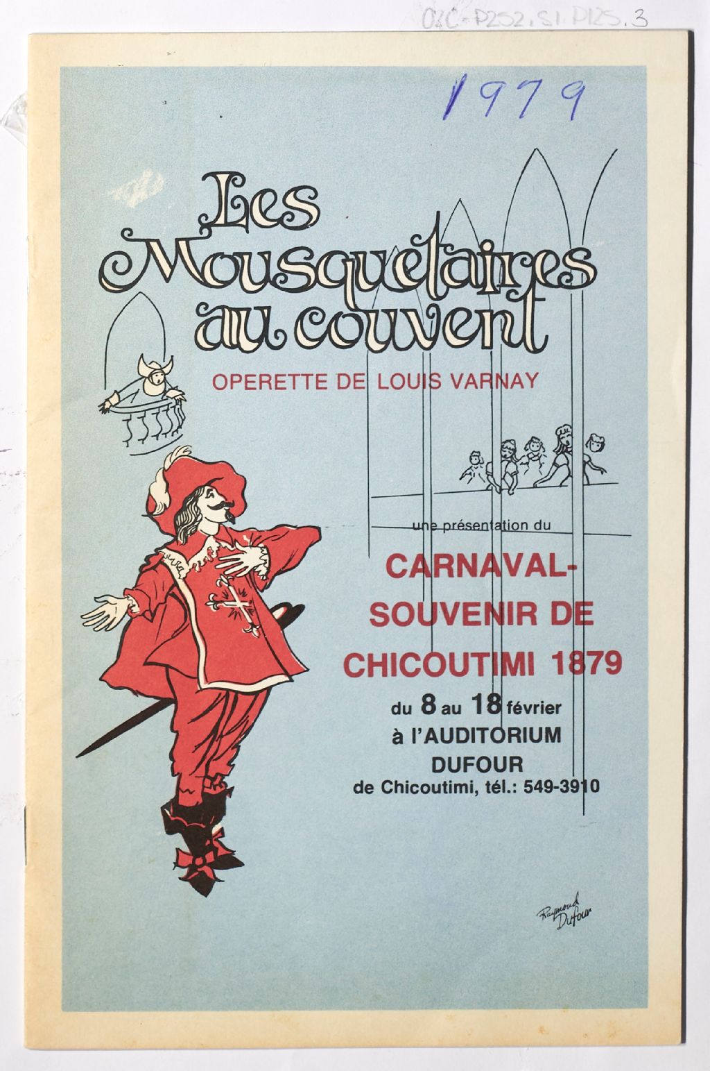 Programme de l'opérette Les Mousquetaires au couvent, 1979-02-08, Archives nationales à Saguenay, Gabrielle Gaudreault, (02C,P252,D1,P125.3).