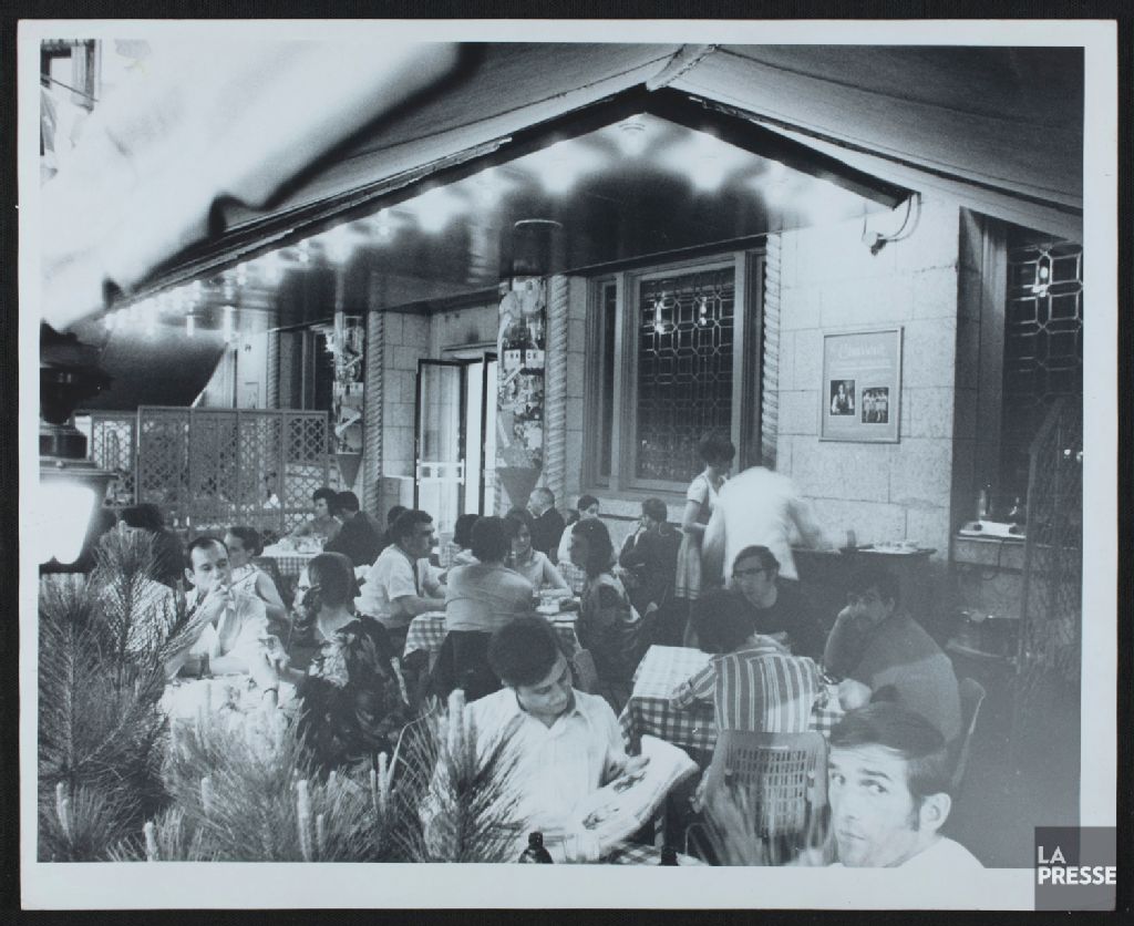- La photographie illustre la terrasse de l'hôtel, situé sur la rue Sherbrooke ouest, entre les rues Drummond et Stanley, à Montréal