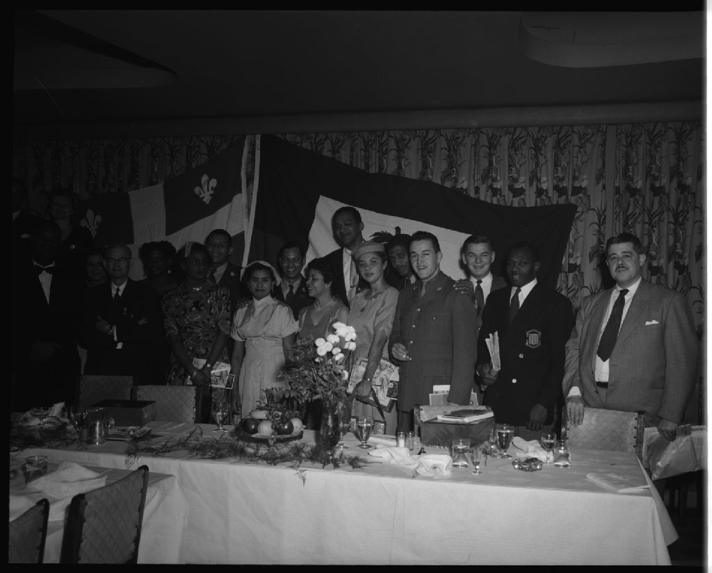 Groupe officiel d'Haiti réuni à l'occasion de la visite du Président Paul Eugène Magloire à Québec, 1955, Archives nationales à Québec, Fonds Ministère de la Culture et des Communications, (03Q,E6,S7,SS1,D2474,P151-55H), Neuville Bazin.