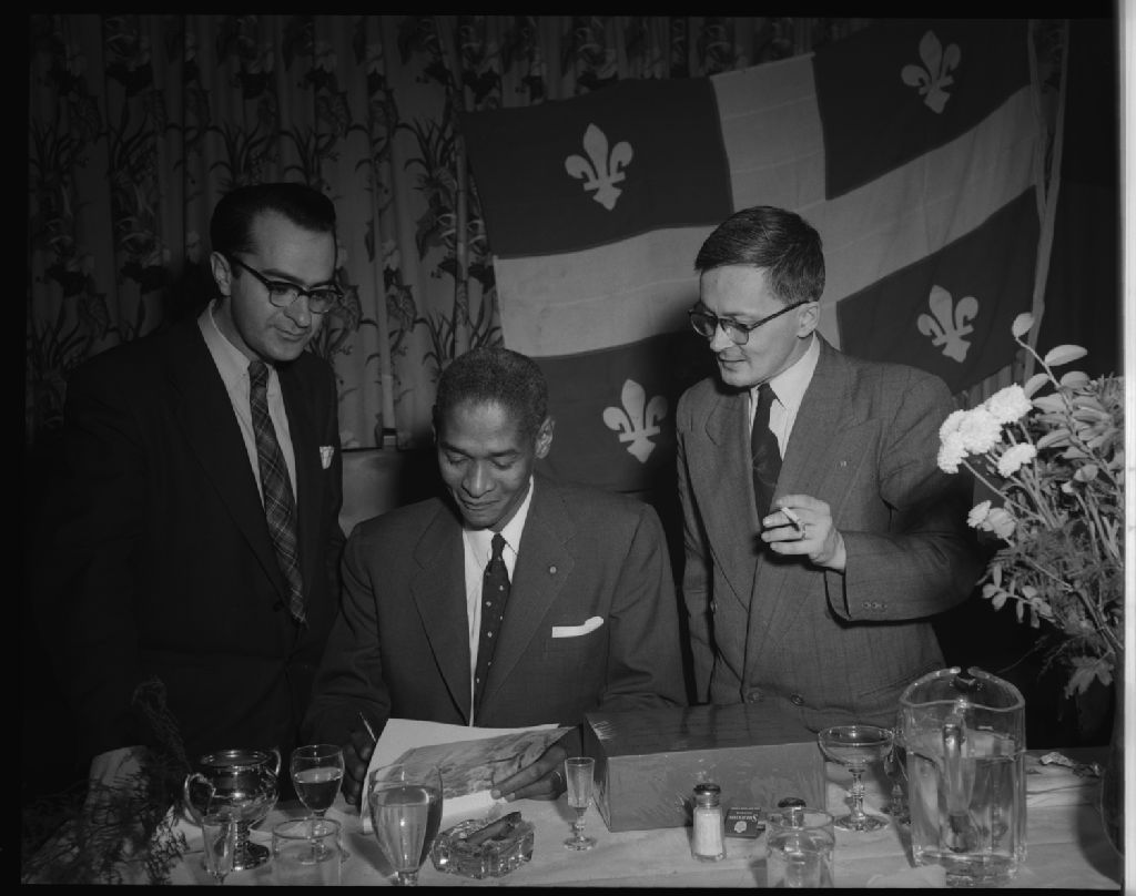 Groupe officiel d'Haiti réuni à l'occasion de la visite du Président Paul Eugène Magloire à Québec, 1955, Archives nationales à Québec, Fonds Ministère de la Culture et des Communications, (03Q,E6,S7,SS1,D2474,P159-55H), Neuville Bazin.