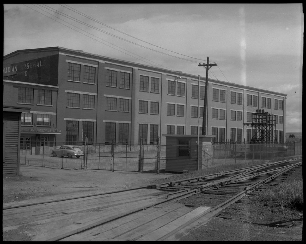 Usine de la Canadian Arsenals à Rivière-du-Loup, 1955, Archives nationales à Québec, Fonds Ministère de la Culture et des Communications, (03Q,E6,S7,SS1,D7,P770-55H), Jos.-W. Michaud.