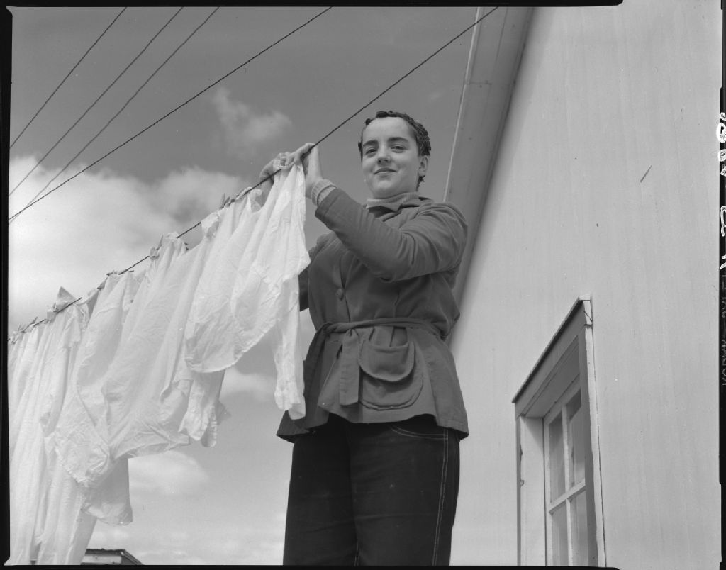 Mlle Archambault étand son linge chez Fortunat Archambault à Saint-Paul-l'Ermite, comté de l'Assomption