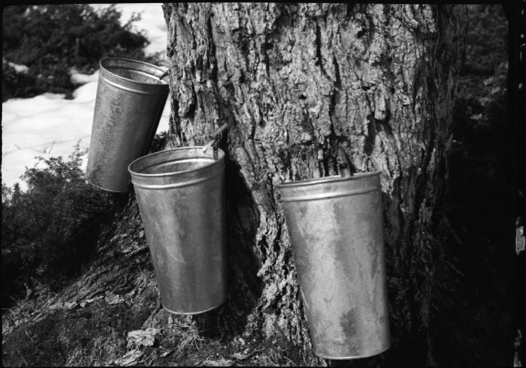 L'eau d'érable coule dans les chaudières. Petite-Rivière-Saint-François
