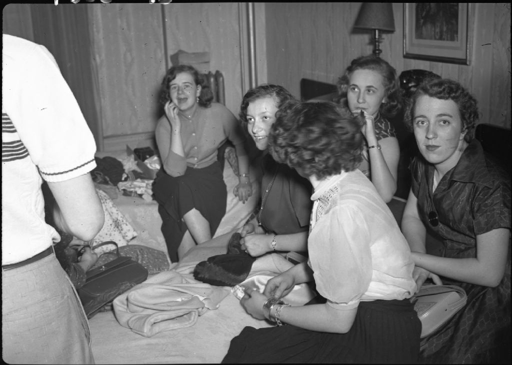 Groupe de femmes de l'institut Driscoll dans une chambre d'hôtel lors d'un voyage à New York
