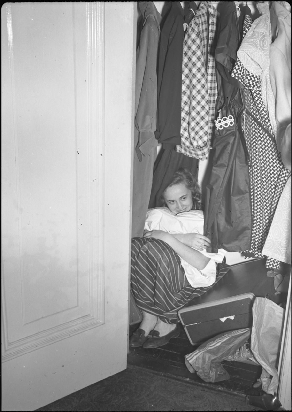 Jeune femme cachée dans un garde-robe