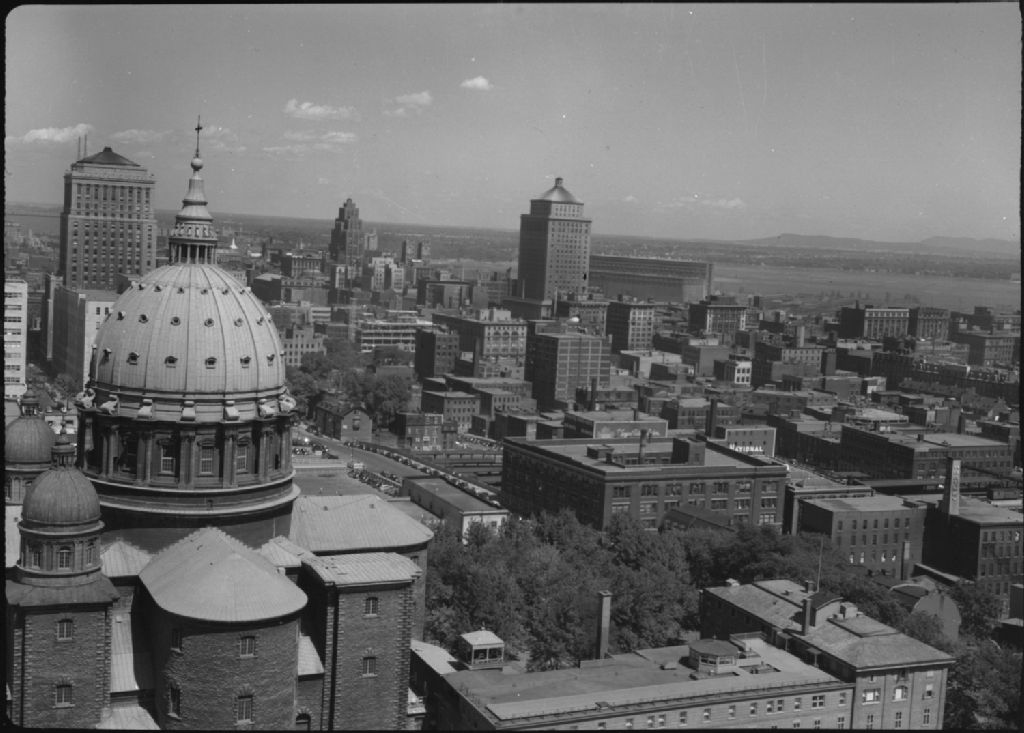 Cathédrale Saint-Jacques-le-Majeur et édifices environnants, Vers 1950, Archives nationales à Québec, Fonds George A. Driscoll, (03Q,P630,S9,D11450), George A. Driscoll.