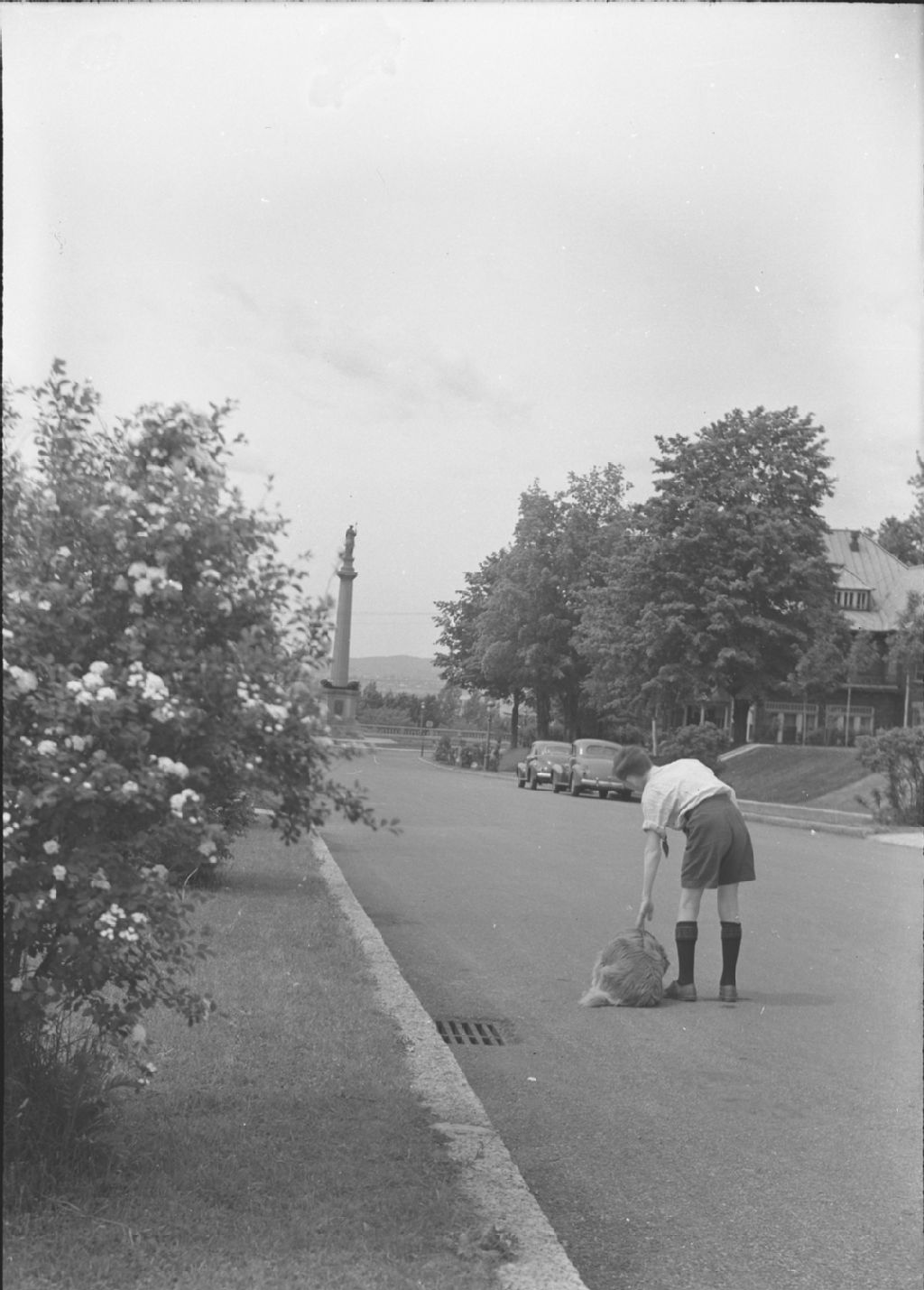 Québec : Avenue des Braves, monument des Braves en arrière-plan, Vers 1950, Archives nationales à Québec, Fonds George A. Driscoll, (03Q,P630,S17,D50849), George A. Driscoll.