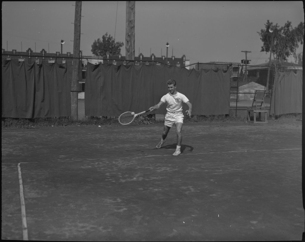 Joueur de tennis, vers 1950, Archives nationales à Québec, Fonds George A. Driscoll, (03Q,P630,S13,D447), George A. Driscoll.