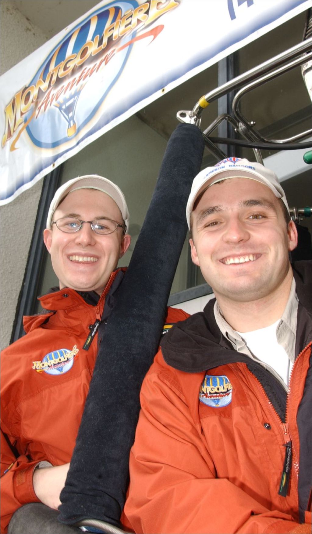 Martin Lafrance, président de Montgolfière Aventure et Luc Gaudreault, le directeur général, 2002-10-30, Archives nationales à Québec, Fonds Steve Deschênes, (03Q,P863,S2,D468), Photographe non identifié.