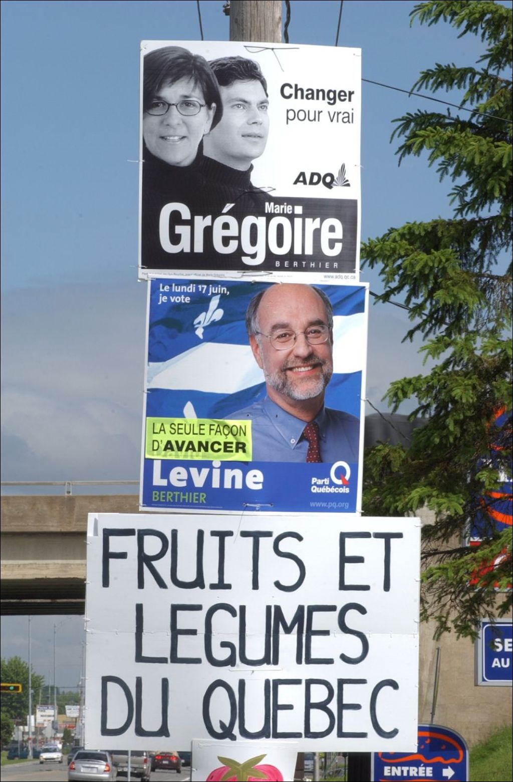 Politique [affiche électorale], 2002-06-27, Archives nationales à Québec, Fonds Steve Deschênes, (03Q,P863,S2,D791), Photographe non identifié.