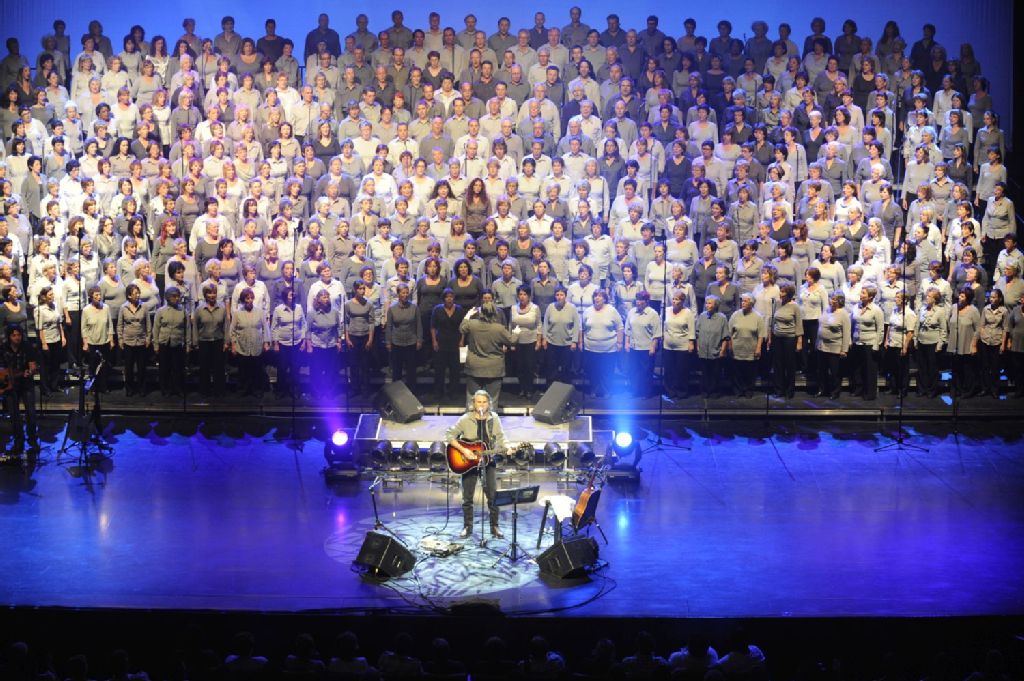 - Le chanteur Richard Séguin en spectacle avec des choristes