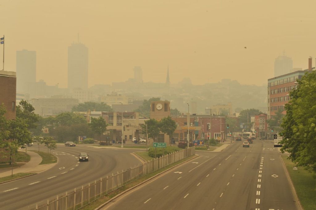 - Fumée de feu de forêt; fumée sur la ville de Québec