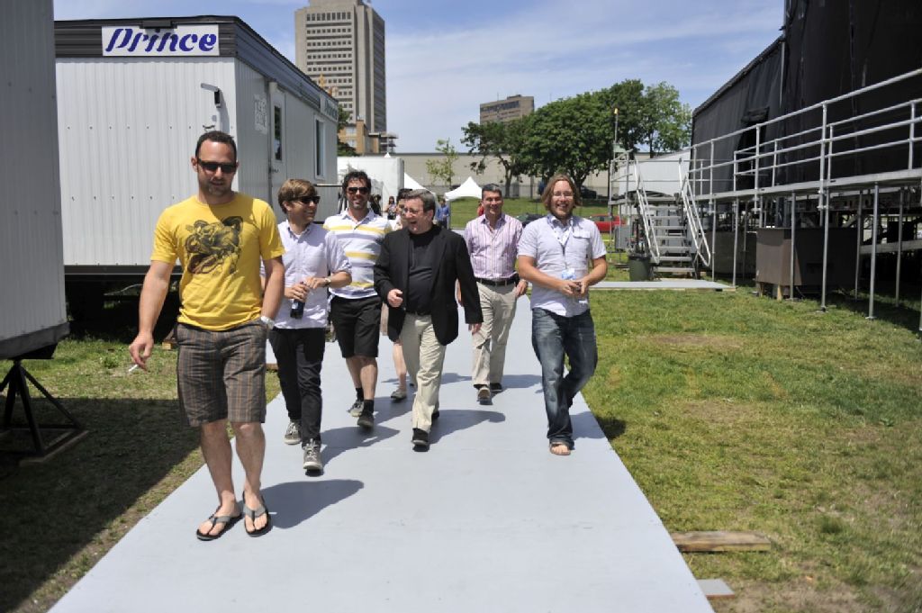 Le maire Régis Labeaume en compagnie du groupe de musique Les Trois Accords (Fête nationale du Québec)