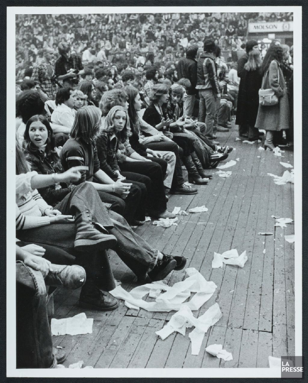 - Le dossier illustre les membres du groupe Queen sur la scène, notamment le chanteur Freddie Mercury. Un document montre des spectateurs avant le début du concert