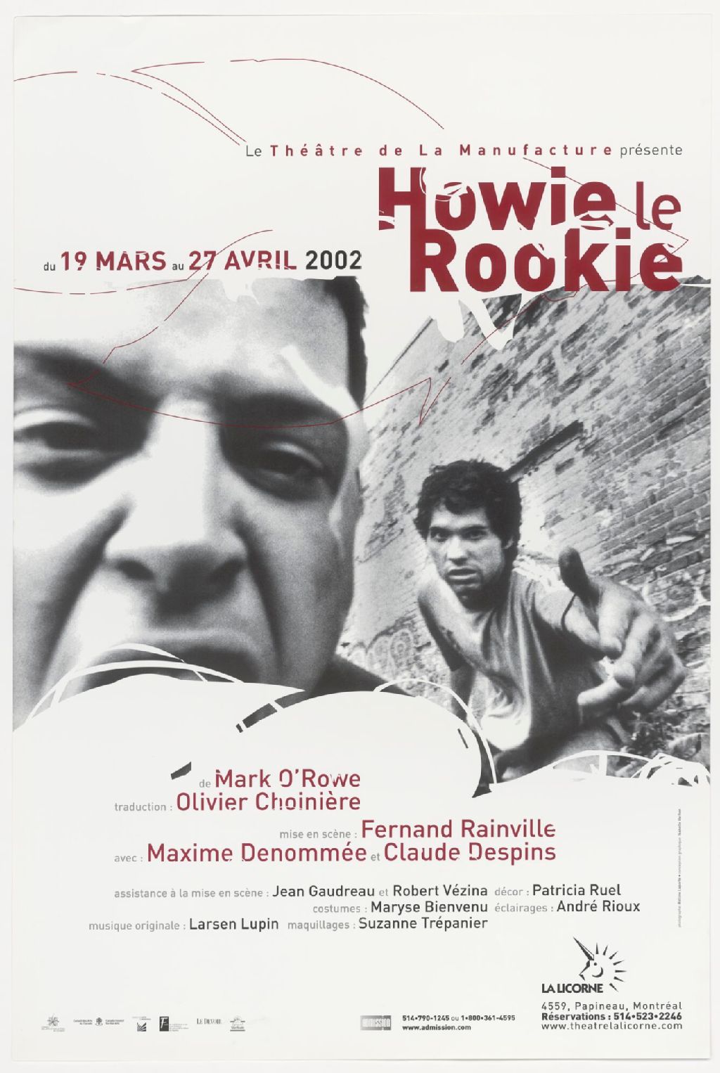Le Théâtre de la manufacture présente Howie le rookie, de Mark O'Rowe... mise en scène Fernand Rainville