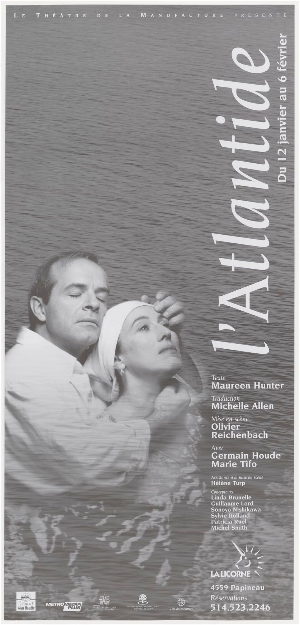 Le Théâtre de la manufacture présente L'Atlantide, texte Maureen Hunter... mise en scène Olivier Reichenbach