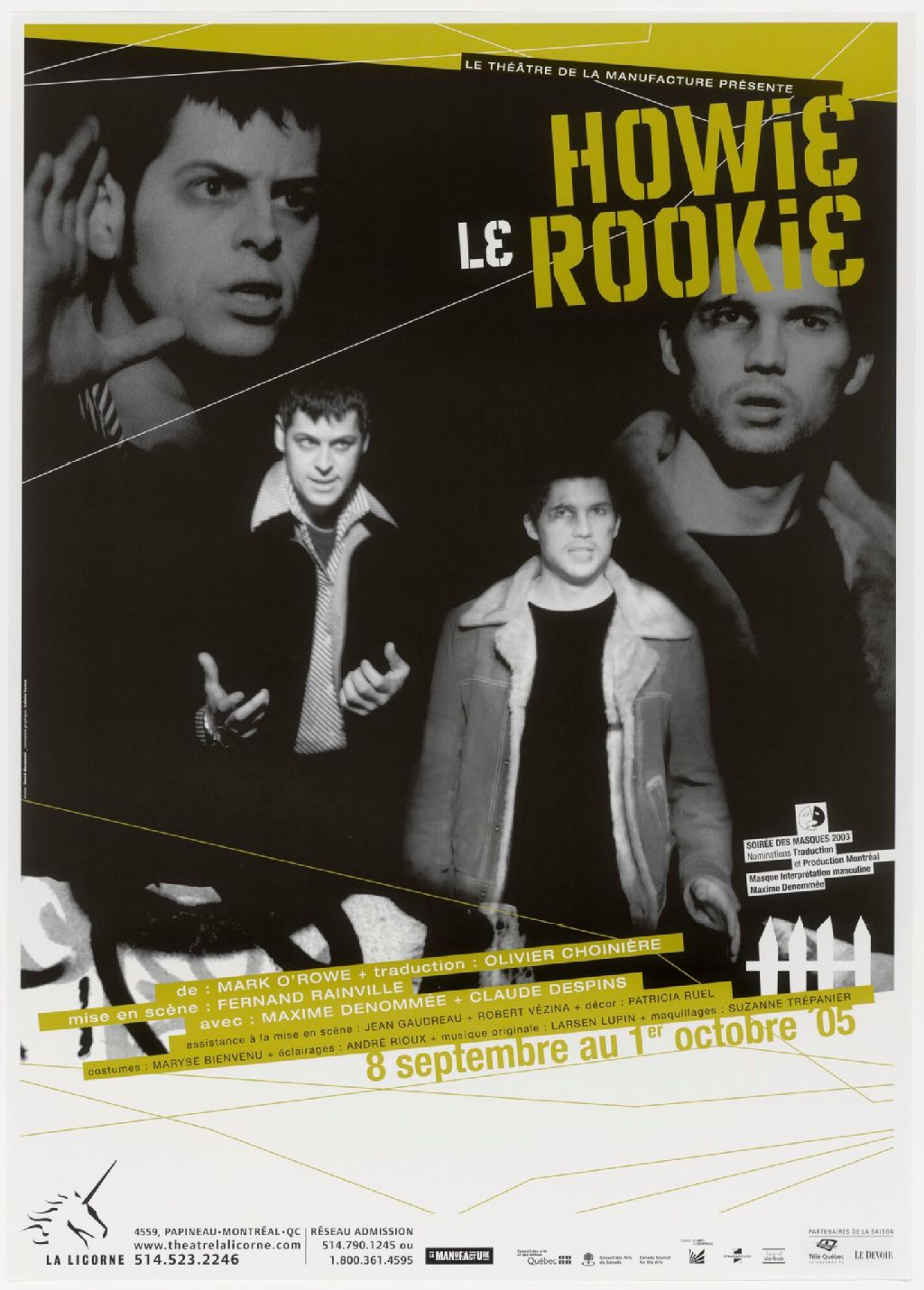 Le Théâtre de la manufacture présente Howie le rookie, de Mark O'Rowe... mise en scène Fernand Rainville