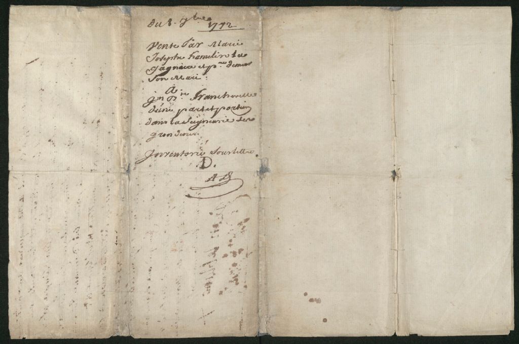 - Vente par Marie Josephe Hamelin à Jean-Baptiste Francheville.