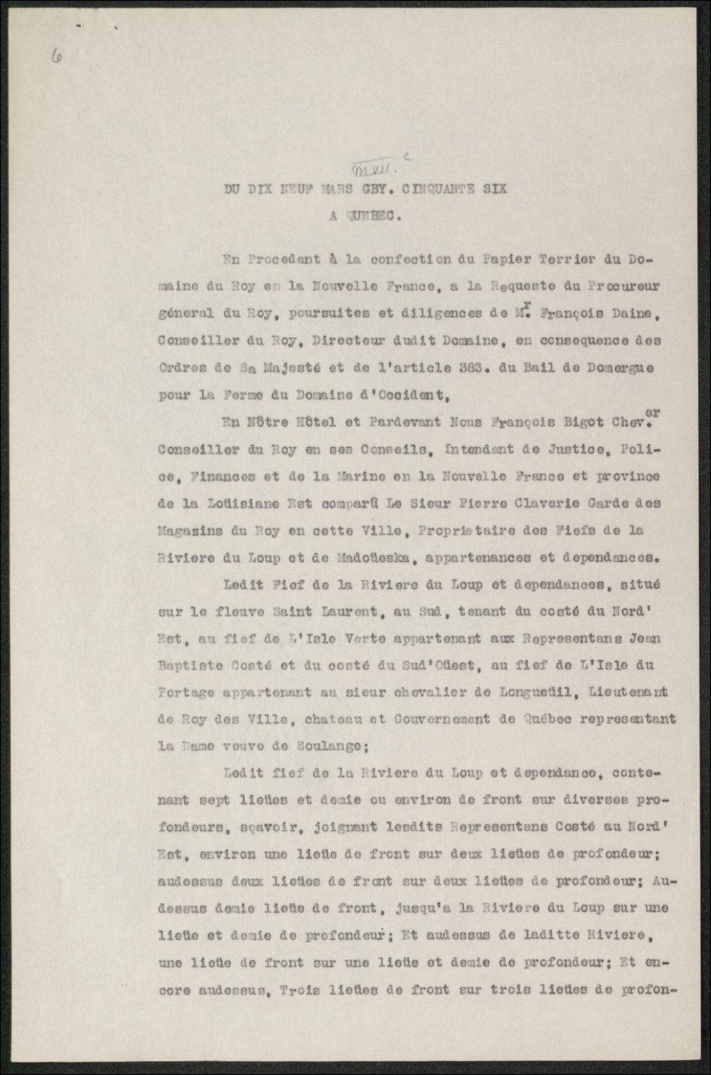- Copie dactylographiée en [19-] (original créé le 19 mars 1756)