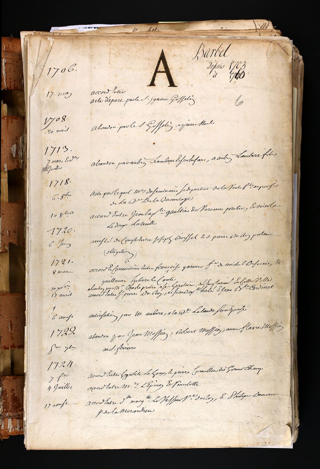 Jacques Barbel, 1698-1740, Archives nationales à Québec, Fonds Cour supérieure. District judiciaire de Québec. Greffes de notaires, (03Q,CN301,S10).