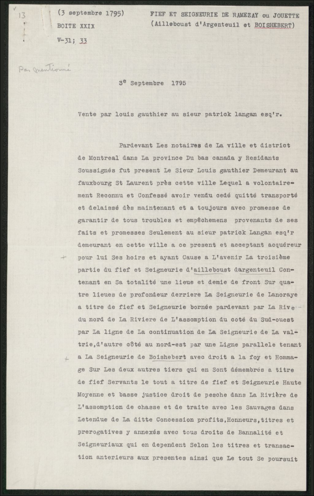 - Vente par Louis Gauthier à Patrick Langan