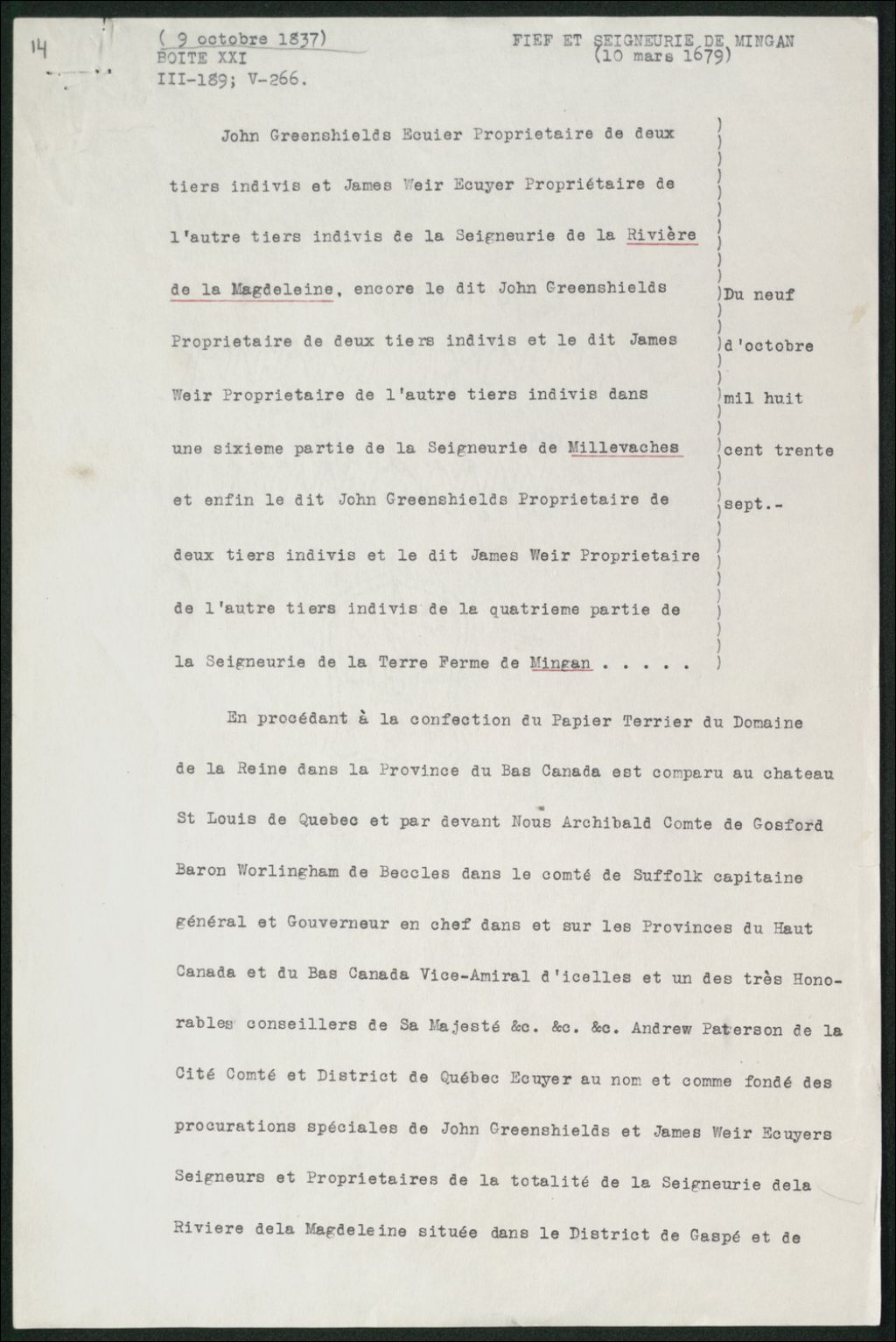 - Copie dactylographiée en [19-] (original créé le 9 octobre 1837)