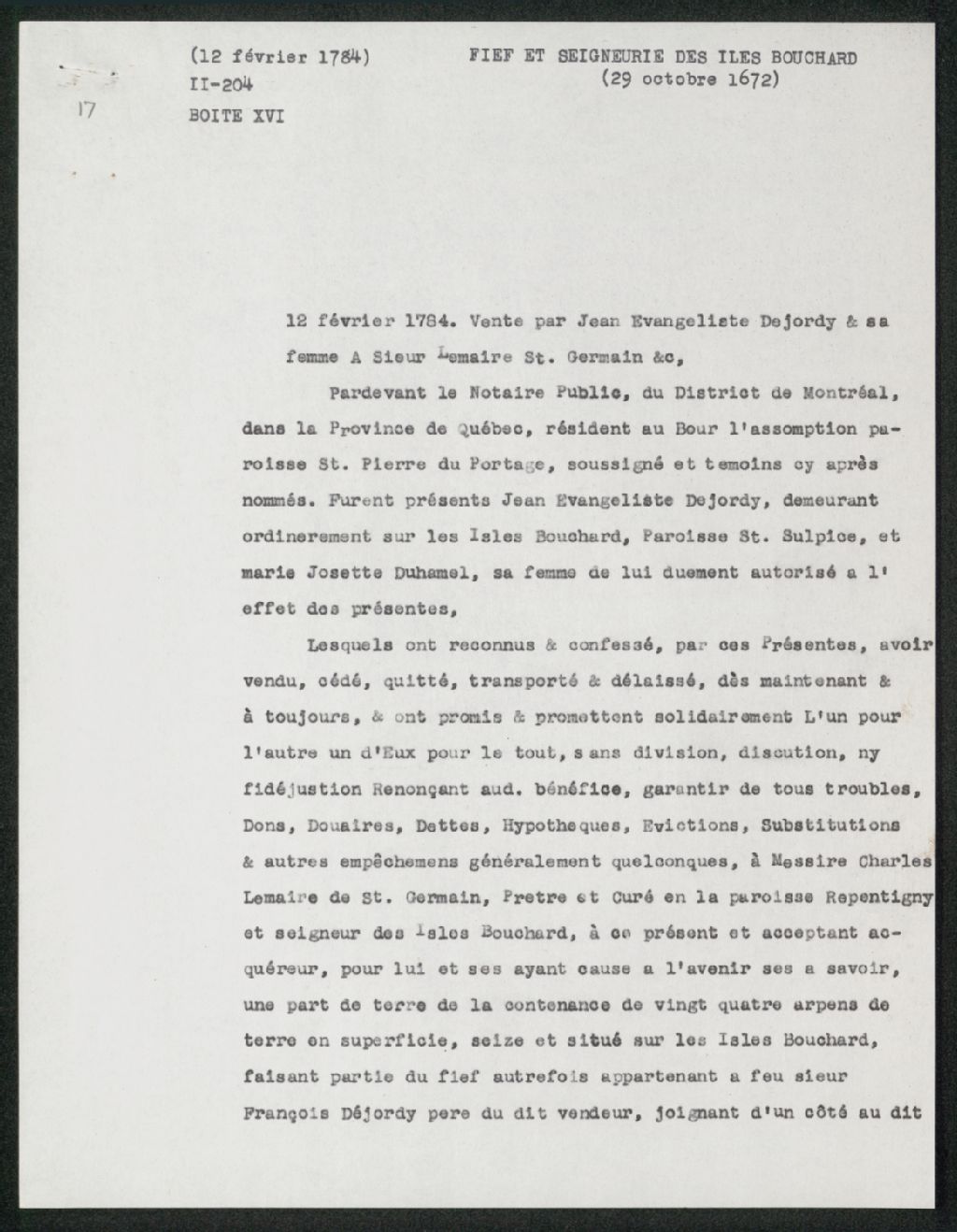 Vente impliquant Jean Evangéliste Desjordy et Charles Lemaire de Saint-Germain
