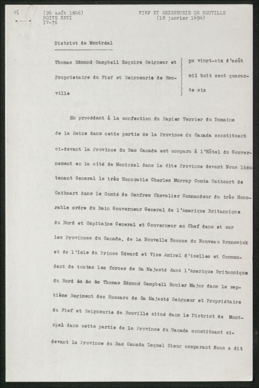 - Acte de foi et hommage de Thomas Edmund Campbell