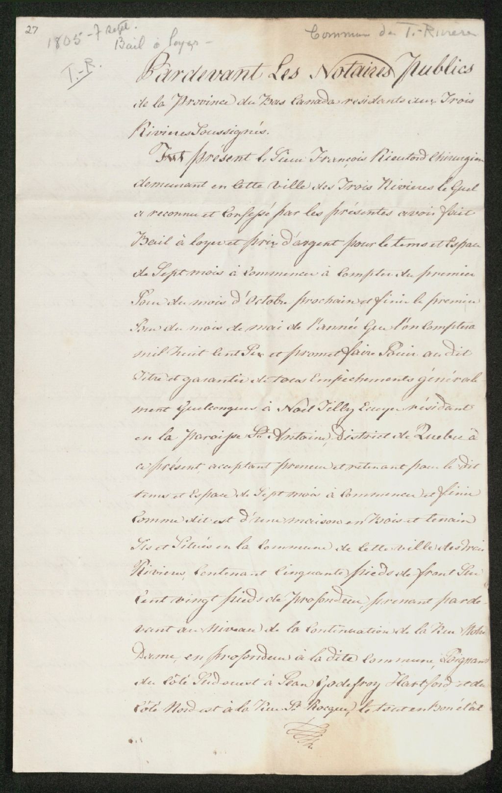 - Bail à loyer par François Rieutord à Noël Tilly