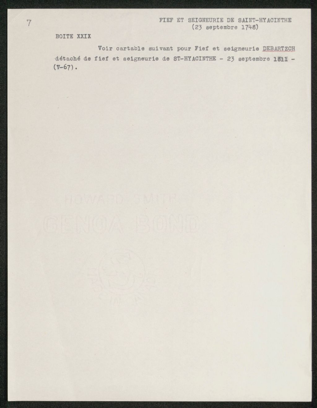 Document de travail: Référence à des documents concernant la seigneurie Debartzch