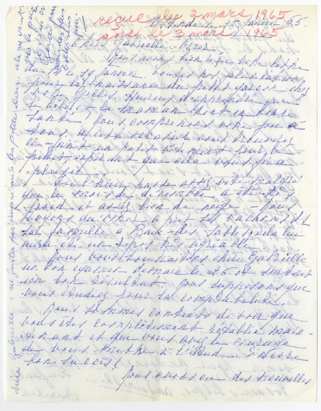 Correspondance de Charles et Antoinette de Bruyne à Omer et Gabrielle Ratté (Pellerin), 25 janvier 1965, 25 janvier 1965, Archives nationales à Rimouski, Fonds Gabrielle Pellerin, (01R,P29,D547).