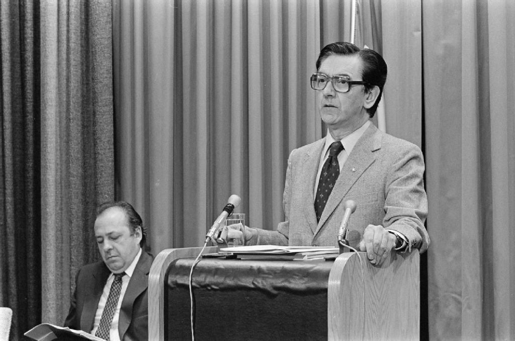 Conférence de presse du Ministre de l'Education Nationale, Camille Laurin, au Parlement de Québec