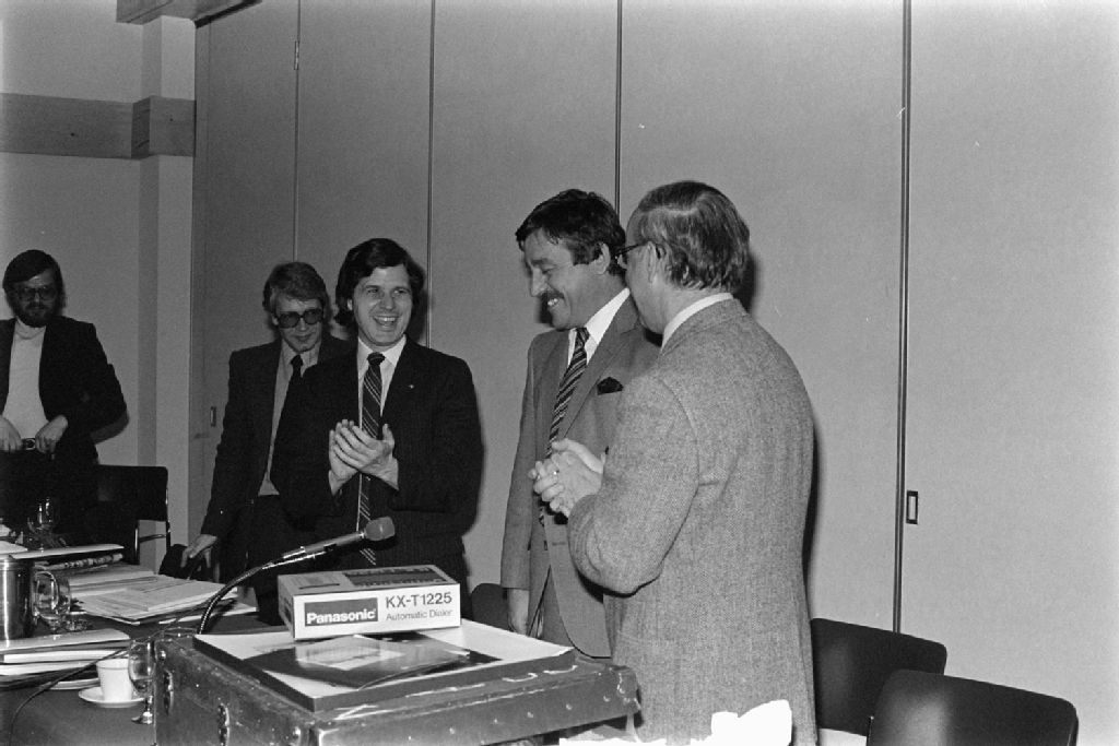Départ de Clément Richard, ex-ministre des Communications à la réunion des cadres au Mont Sainte-Anne, 1981-05-07, Archives nationales à Québec, Fonds Ministère des Communications, (03Q,E10,S44,SS1,D81-300), Bernard Vallée.
