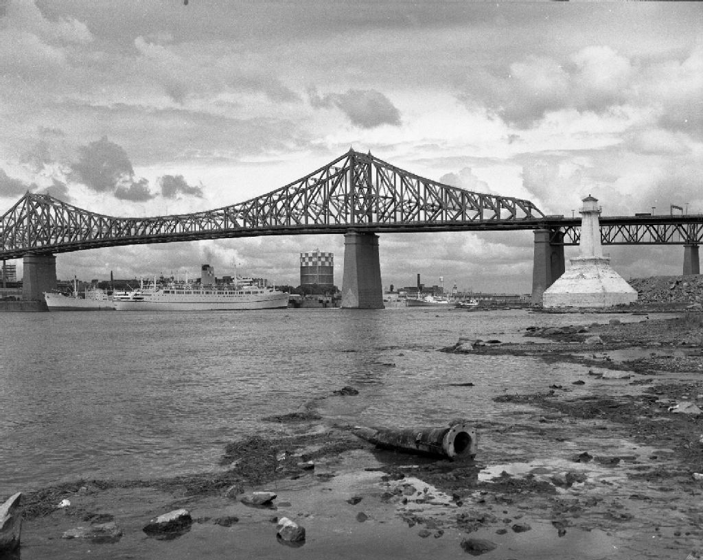 Vue du pont Jacques Cartier et de bateaux depuis l'île Sainte Hélène, 29 juillet 1965, Archives nationales à Montréal, Fonds Armour Landry, (06M,P97,S1,D8283-8283), Armour Landry.