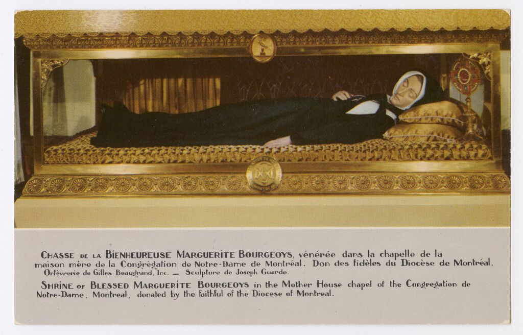 Chasse de la Bienheureuse Marguerite Bourgeoys, vénérée dans la chapelle de la maison mère de la Congrégation de Notre-Dame de Montréal ... = Shrine of Blessed Marguerite Bourgeoys in the mother house chapel of the Congregation de Notre-Dame, Montreal ...