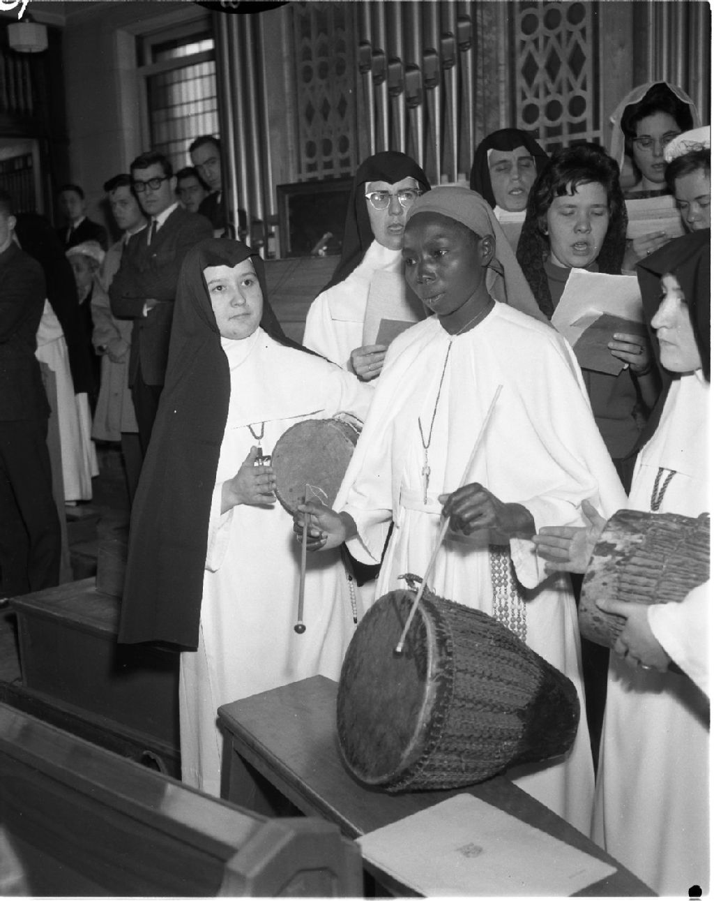 Religieuses avec tam-tam lors d'une messe africaine à la Chapelle de l'Université d'Ottawa