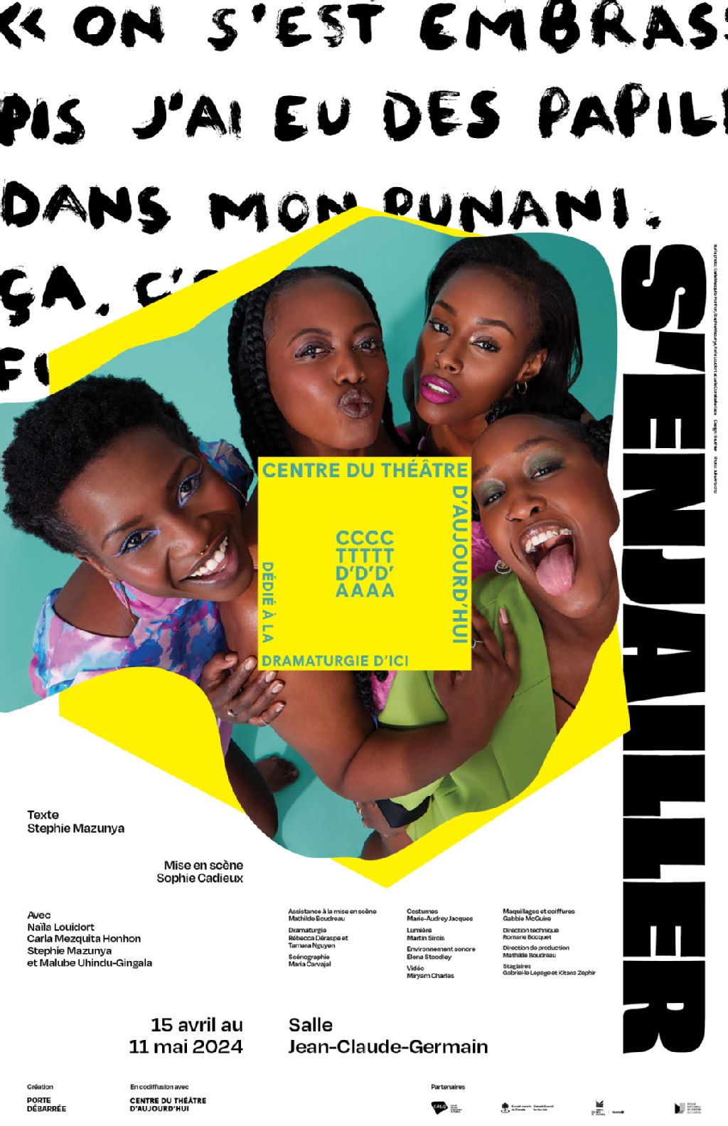 S'enjailler, texte Stephie Mazunya, mise en scène Sophie Cadieux, avec Naïla Louidort, Carla Mezquita Honhon, Stephie Mazunya et Malube Uhindu-Gingala..., Salle Jean-Claude-Germain, du 15 avril au 11 mai 2024, Centre du Théâtre d'Aujourd'hui, dédié à la dramaturgie d'ici