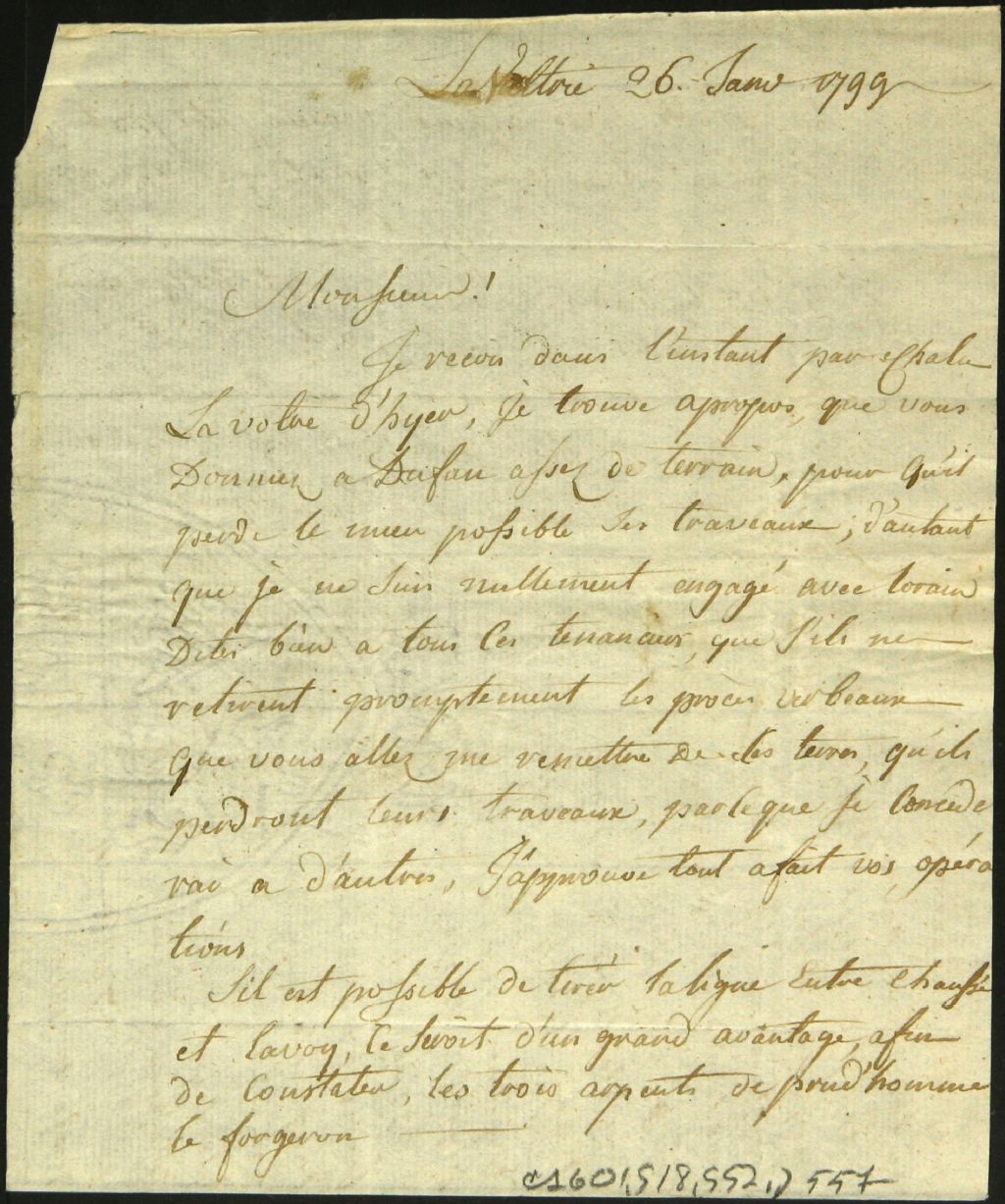 - Ce dossier comprend aussi l'ordre donné par Monsieur de Lavaltrie pour l'arpentage du Sud-Ouest du Naquereau et une lettre de Monsieur de Lavaltrie adressée à Maurice Desdevens de Glandon