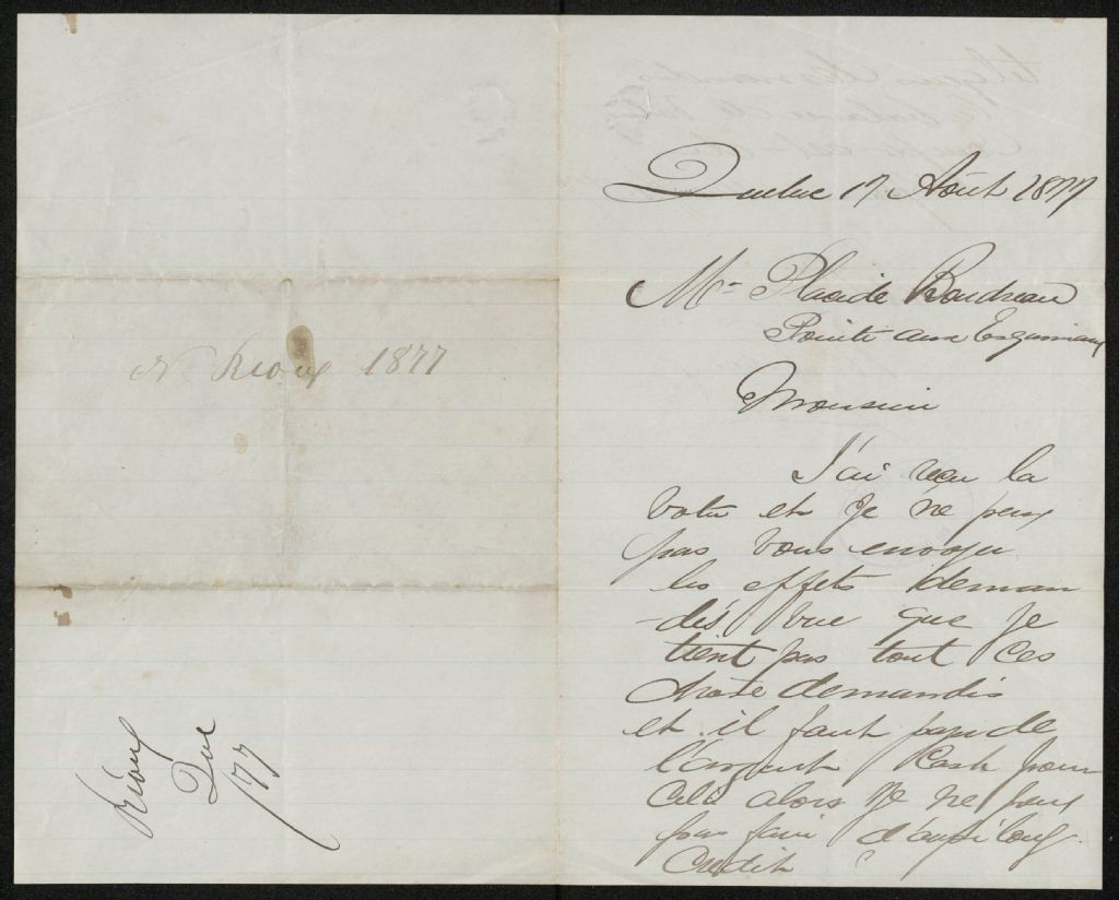 Narcisse Rioux, 1877, Archives nationales à Sept-Îles, Fonds Placide Vigneau (en traitement), (09N,P48,S1,SS1,D66).